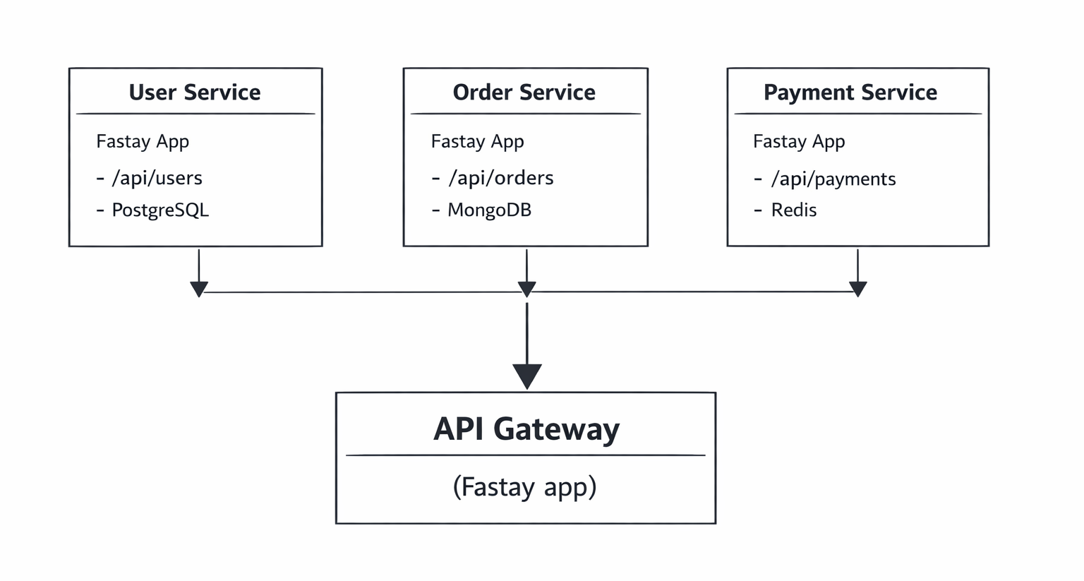 Fastay's simplicity and focus make it an excellent choice for microservices. Each service remains lightweight and focused, while still benefiting from Fastay's productivity features like file-based routing and TypeScript support. By following these patterns, you can build a scalable, maintainable microservices architecture with Fastay.